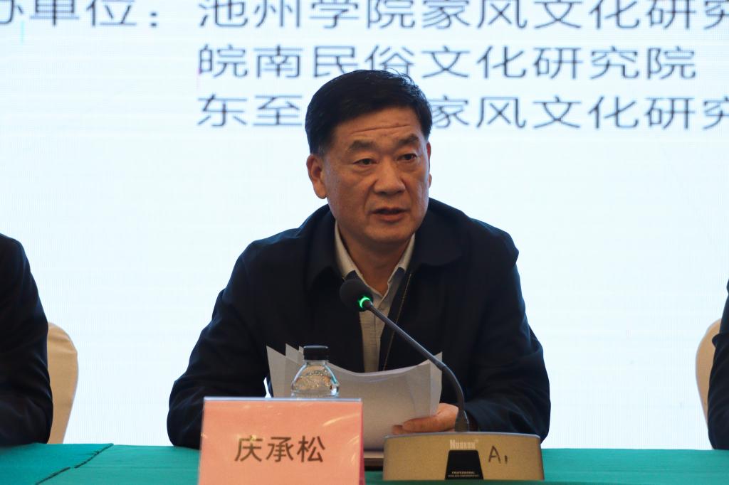 10月15日-16日,由best365手机版官方网站、池州市教体局、池州市妇联、池州市社科联共同举办的池州市第二届家风文化学术研讨会在best365官网召开。中共安徽省委教育工委副书记庆承松,中共池州市委副书记田昕,校党委书记孙晓峰出席开幕式并致辞。校党委副书记、校长张立驰,省委教育工委思政处副处长、二级调研员林禄明,安徽师范大学原副校长、教授、博士生导师王世华,江苏师范大学家文化研究院院长、教授、博士生导师陈延斌,皖江文化研究会会长、著名文化学者汪军,中共池州市委教育和体育工委书记、教体局局长胡学慧,中共池州市委宣传部副部长、社科联主席姚红英,池州市妇联党组书记、主席刘茂华,校党委委员、纪委书记、监察专员汪海,校党委委员、副校长汪贤才等在主席台就坐。来自全国20多所高校、研究中心和政府、企事业单位的近百名专家学者参加会议。