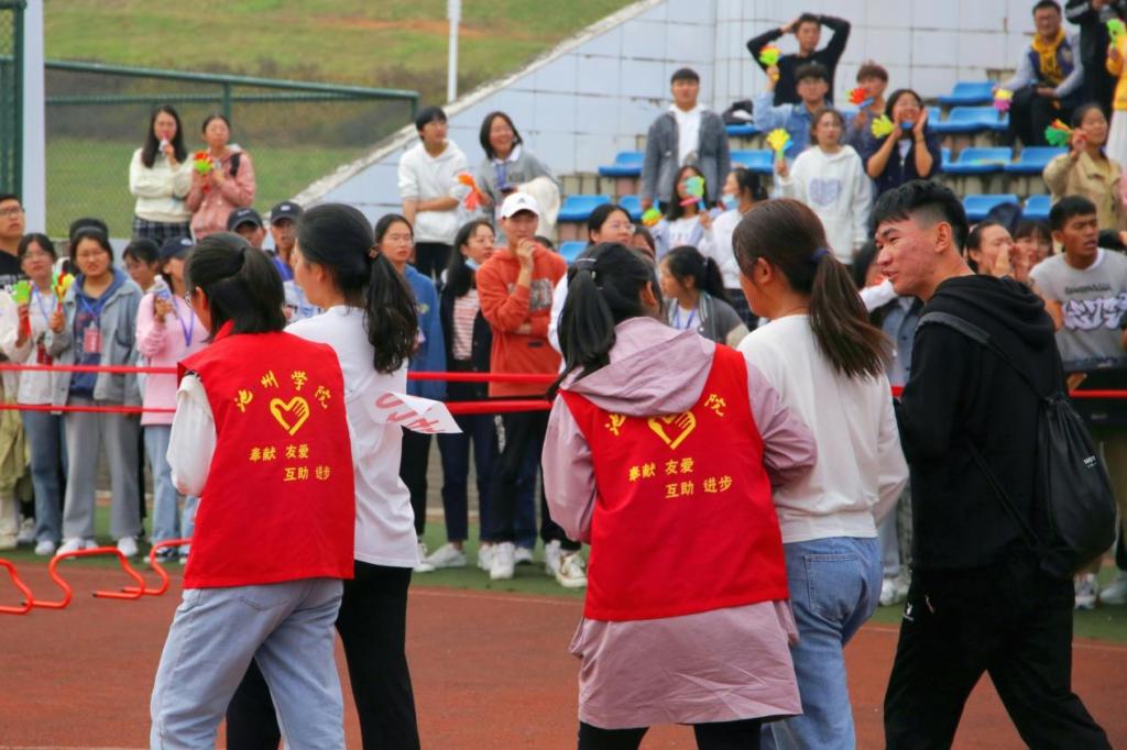 赛场上,同学们激烈的竞争。场下,一个个“红马甲”坚守自己的岗位,为选手们提供暖心的服务。