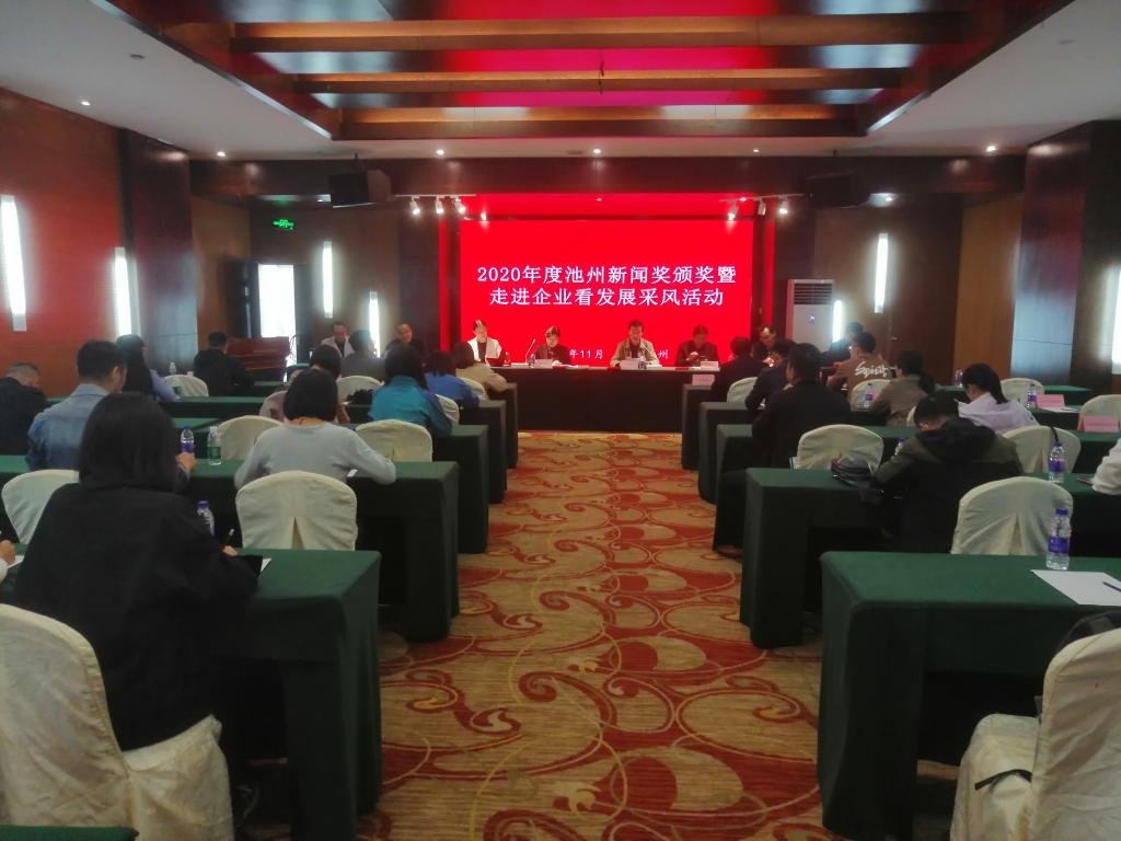 11月3日,池州市2020年度新闻奖颁奖仪式在东榕大酒店举行,best365官网报送作品《校地共植“致富菊”》(作者:袁梦成)荣获报刊类三等奖。池州市委宣传部常务副部长章文静,池州日报社党组书记、社长左宗伟等出席颁奖仪式,并为获奖人员颁奖。