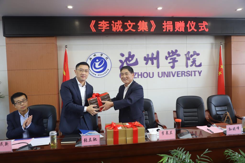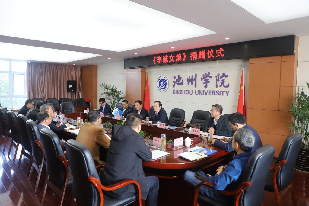 11月1日上午,《李诚文集》捐赠仪式在办公楼北三楼会议室隆重举行。李诚先生哲嗣李皋兰、东至周氏文化研究会副秘书长马民新出席捐赠仪式,校党委书记孙晓峰出席仪式并致辞,校领导张立驰、崔国发、王延寿、汪海出席仪式,汪贤才主持仪式。