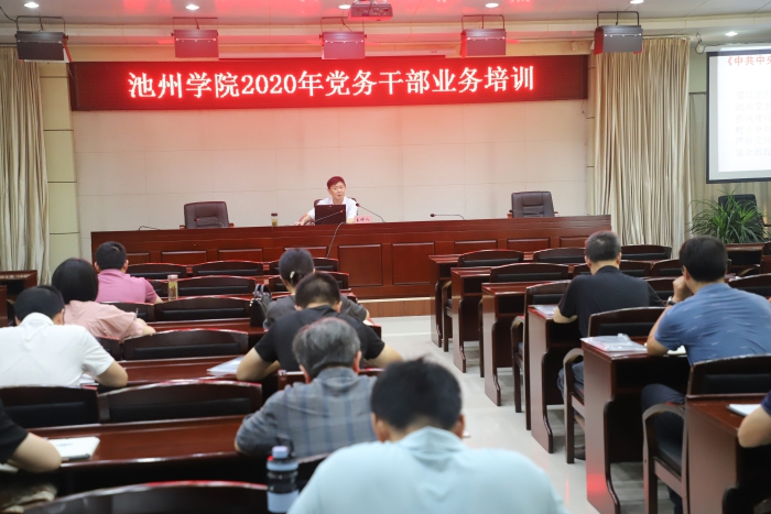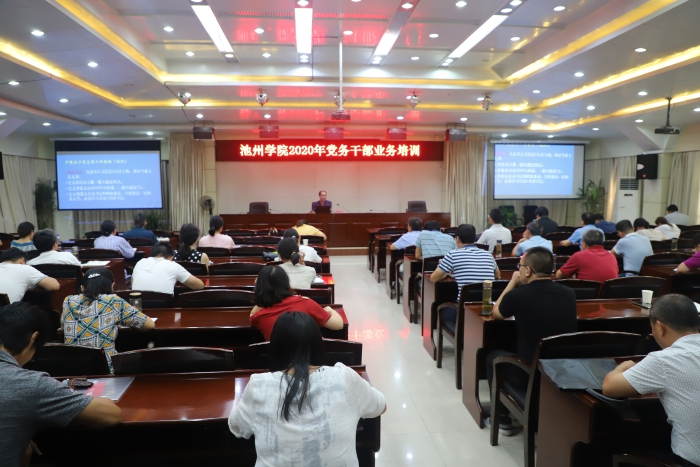8月25日至26日,best365官网在办公南楼二楼报告厅开展2020年党务干部业务培训,全校二级学院党委书记、专职组织员、党支部书记共80人参加培训。