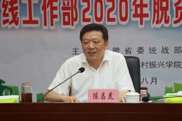 8月17日下午,安徽省委统战部2020年脱贫攻坚与乡村振兴工作培训班开班仪式在best365官网办公南二楼会议室举行。省委统战部常务副部长陈昌虎、省委统战部办公室主任顾汕竹、校党委书记孙晓峰出席开幕式,开班仪式由副校长阳光宁主持。