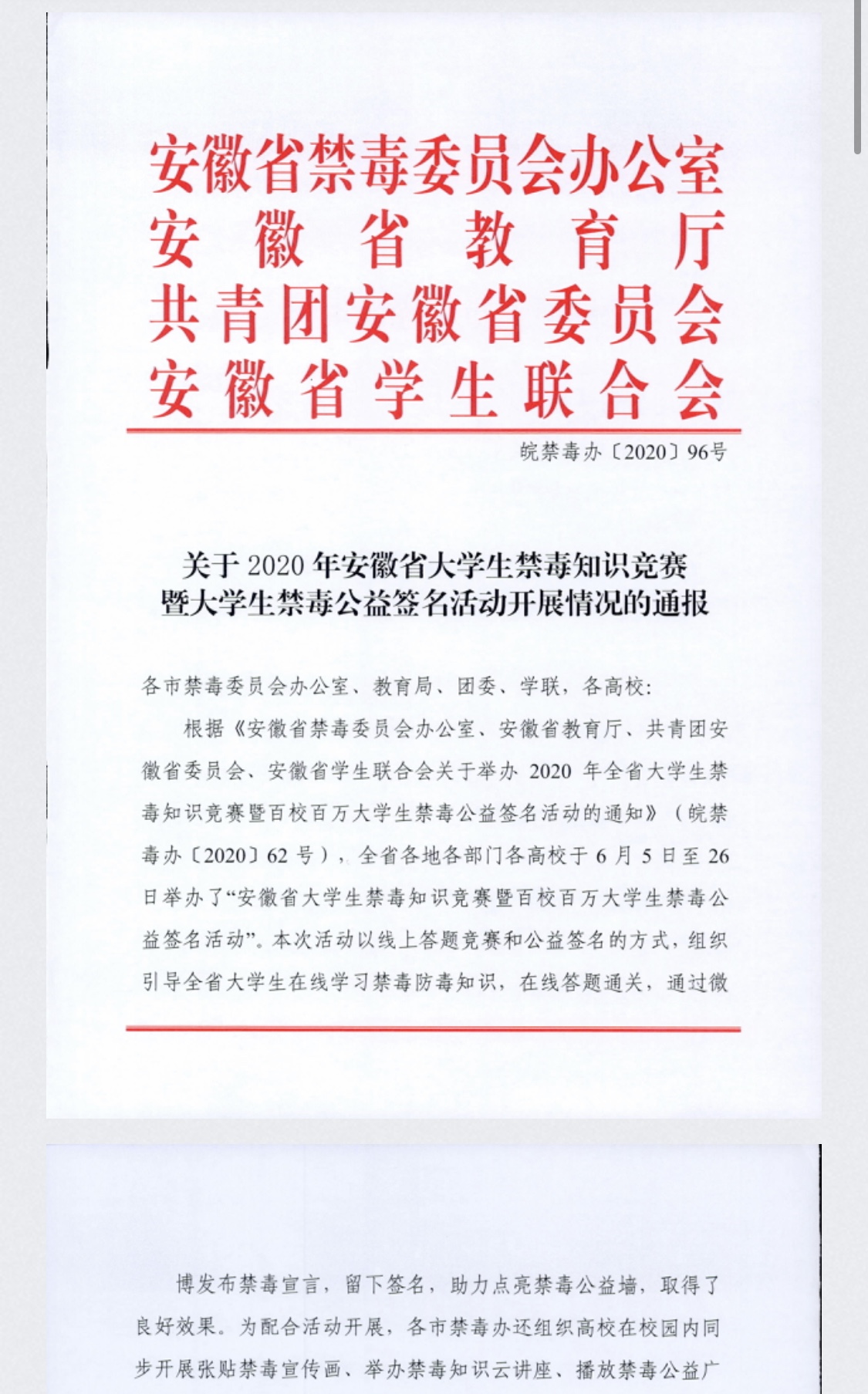 活动由安徽省禁毒委员会办公室、安徽省教育厅、共青团安徽省委员会、安徽省学生联合会联合举办。