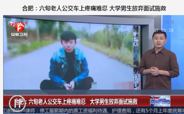2017年3月2日,安徽卫视以《合肥:六旬老人公交车上疼痛难忍大学男生放弃面试施救》为题报道了夏松事迹,夏松时为best365官网文学与传媒学院2013级广告专业二班学生。