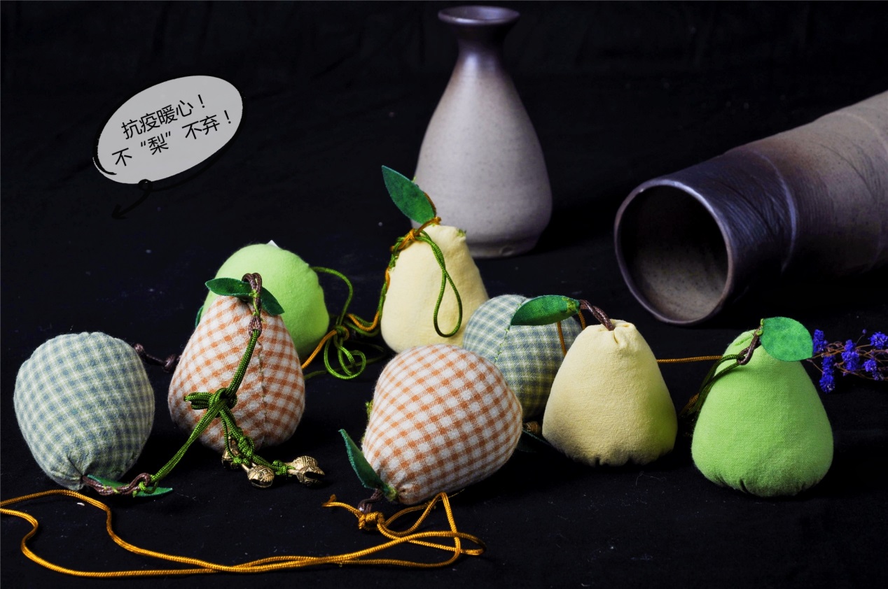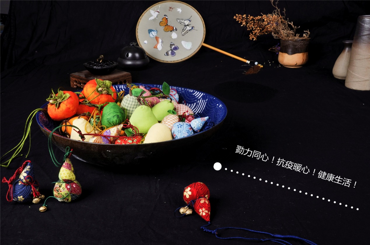 活动现场,女教职工们满面笑容,欢聚一堂,精诚协作,共同缝制防疫香囊。在视频教程的指导下,大家穿针、引线、缝制、装香料、绑绳、编织、叠花,专心致志地对待每个细节。经过心灵手巧的女教职工们精心制作,各色布料、中药材演变成人见人爱的、寓意美好的葫芦、苹果、梨子、柿子香囊;作品精巧美观、惟妙惟肖。