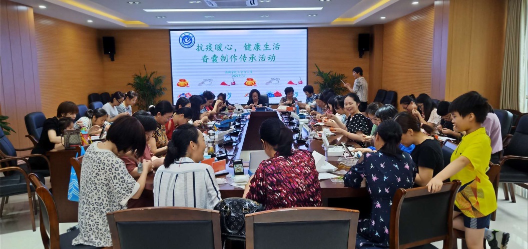 7月8日下午,校工会女工委在行政北二楼会议室举办了“抗疫暖心,健康生活”传统文化传承活动,来自分工会的部分女教职工参加了此次活动。