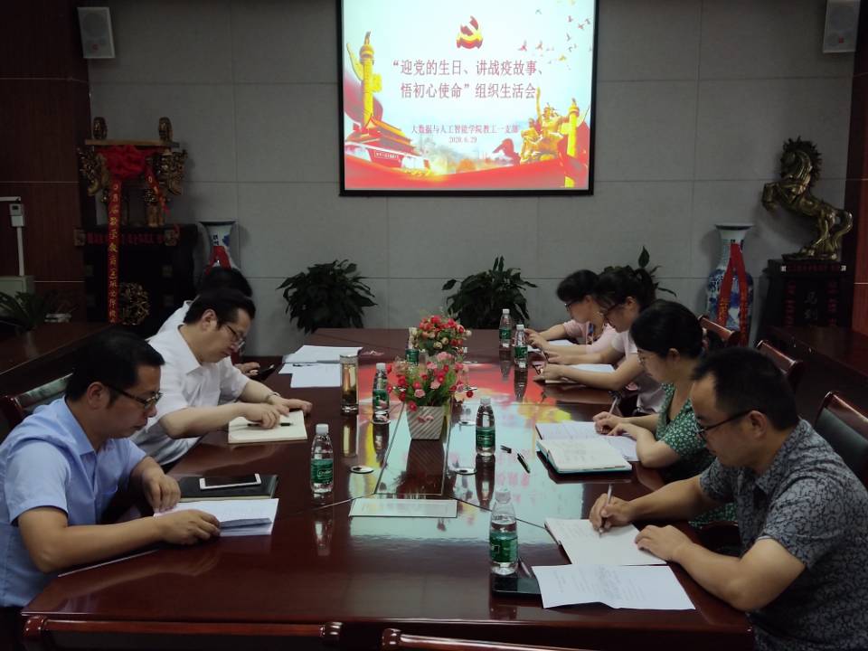 在建党99周年来临之际,6月29日下午,大数据与人工智能学院教工第一党支部开展了“迎党的生日、讲战疫故事、悟初心使命”专题组织生活会,校党委书记孙晓峰以普通党员的身份参加活动。