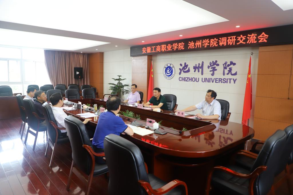 6月12日下午,安徽工商职业学院党委书记孙永,党委副书记、院长李雪,党委委员、组织人事处处长陈章奇一行来best365官网调研交流工作,校党委书记孙晓峰、副书记崔国发在办公楼北三楼会议室会见了孙永一行。