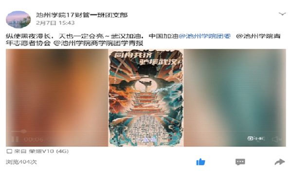 学院团委组织开展了“抗击疫情、共青团在行动”主题团日活动、“疫情期间我想对______说”“抗疫恋家”、线上学习听课笔记评选等一系列活动。通过这些活动引导学生树立大局意识,弘扬奉献精神,强化学生自我管理、自我服务、自我提升的能力,发挥组织育人功效。