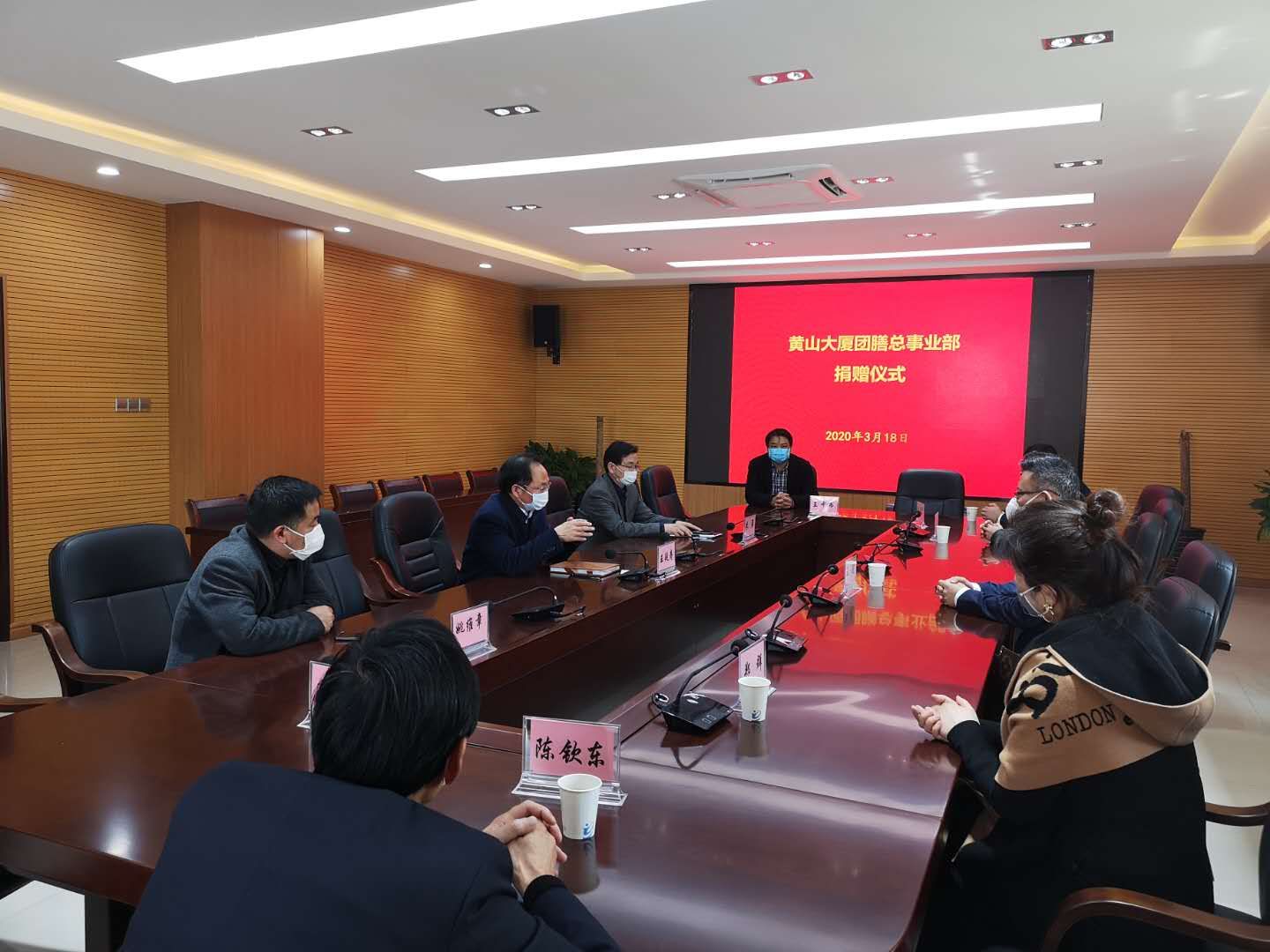 3月18日上午,黄山大厦团膳总事业部董事长王健一行五人来best365官网,向best365官网捐赠口罩、医用酒精、84消毒液、消毒喷壶等疫情防控急需物资。校党委书记孙晓峰、校长柳友荣会见了王健一行,副校长王延寿代表学校接受捐赠。