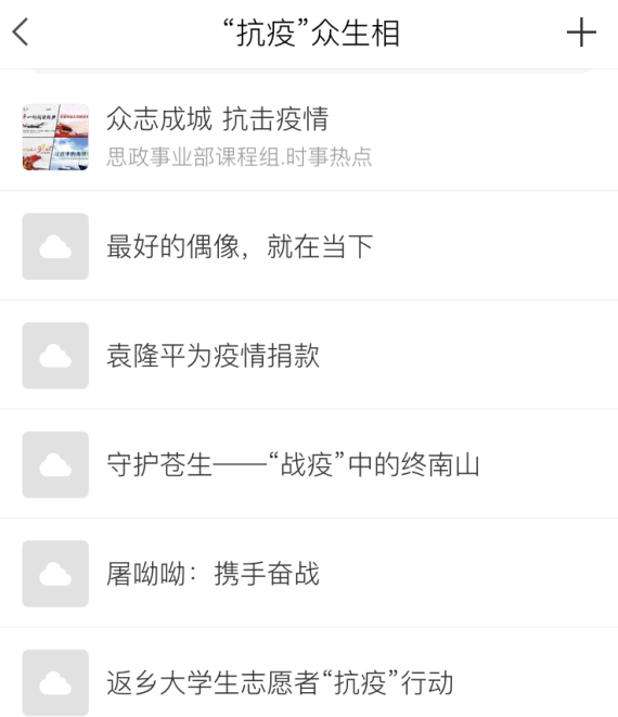 “思想道德修养与法律基础”课程线上教学中,彭梅老师结合教学内容,在学习通中安排了“战疫”专题,专题由五部分组成,分别为科学防护(四个网页链接)、强身健体抗疫(在家健身,四个视频)、“抗疫”众生相(11个网页链接,各行各业的抗疫英雄事迹)、法治抗疫(两个网页链接)及马克思主义学院自制的疫情思政课视频,内容丰富,形式多样,形象生动。姚丽娜老师结合当前抗疫斗争,在线上教学中组织学生开展了“对于当下疫情,令你最为感动的是什么”“作为新时代青年大学生应该有何作为”等多次主题讨论,通过师生思想的交流与碰撞,让学生精神得到一次次洗礼。