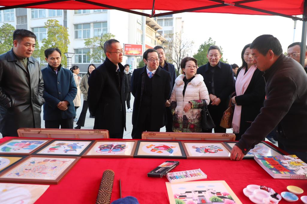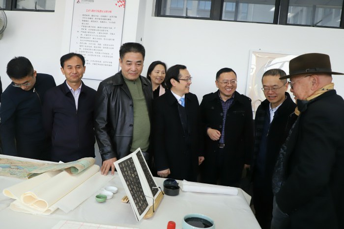 下午15时,省委宣传部、省委教育工委、省文联、团省委、安徽演艺集团、省非遗研究会等单位负责同志共同参观了best365官网校地合作展示馆、艺术与教育学院陈列馆、best365手机版官方网站家风文化馆。在艺术与教育学院,由吴礼奇、杨国新、许国、盘龙、王成等带队的省书协、美协、摄协、音协、舞协等小分队,结合学校特色社团活动,举办了书法、绘画、摄影、音乐、舞蹈等文艺志愿辅导活动,受到同学们的热烈欢迎。
