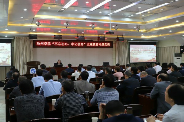 校党委书记孙晓峰以“新时代需要新理论、新思想引领新发展”为题深刻阐述了“不忘初心、牢记使命”主题教育的重大意义和丰富内涵,交流了学习习近平总书记关于教育的重要论述的体会,解读了作为一名党员干部和教育工作者,践行“初心使命”怎么干的问题。孙晓峰指出,作为高校党员干部,要做先进生产力的代表者和开拓者,做先进思想文化的传播者和创造者,做先进道德风尚的示范者和推广者,做建设社会主义和谐社会的先行者。要坚持目标定位,做新时代敢担当有作为的党员干部,要坚持问题导向,深化调研找差距,要压紧压实工作责任,牢牢掌握党对意识形态工作领导权,要落实全面从严治党要求,展现高校新气象新作为。