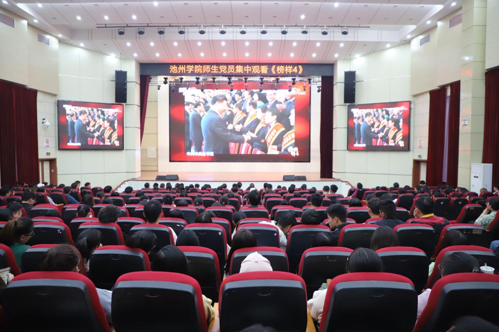 10月21日晚,校党委书记孙晓峰、校长柳友荣与近500名师生党员在博古楼礼堂共同观看《榜样4》专题节目。