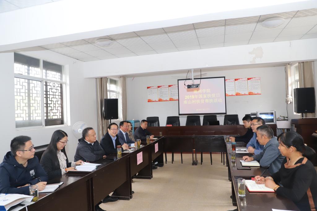 10月17日,在第六个全国扶贫日当天,校党委书记孙晓峰率队赴石台县丁香镇库山村开展“深化主题教育,助推脱贫攻坚”精准扶贫专项调研,副校长王延寿、阳光宁参加活动,石台县委副书记、县长章文静,石台县委常委、政法委书记施道良陪同调研。