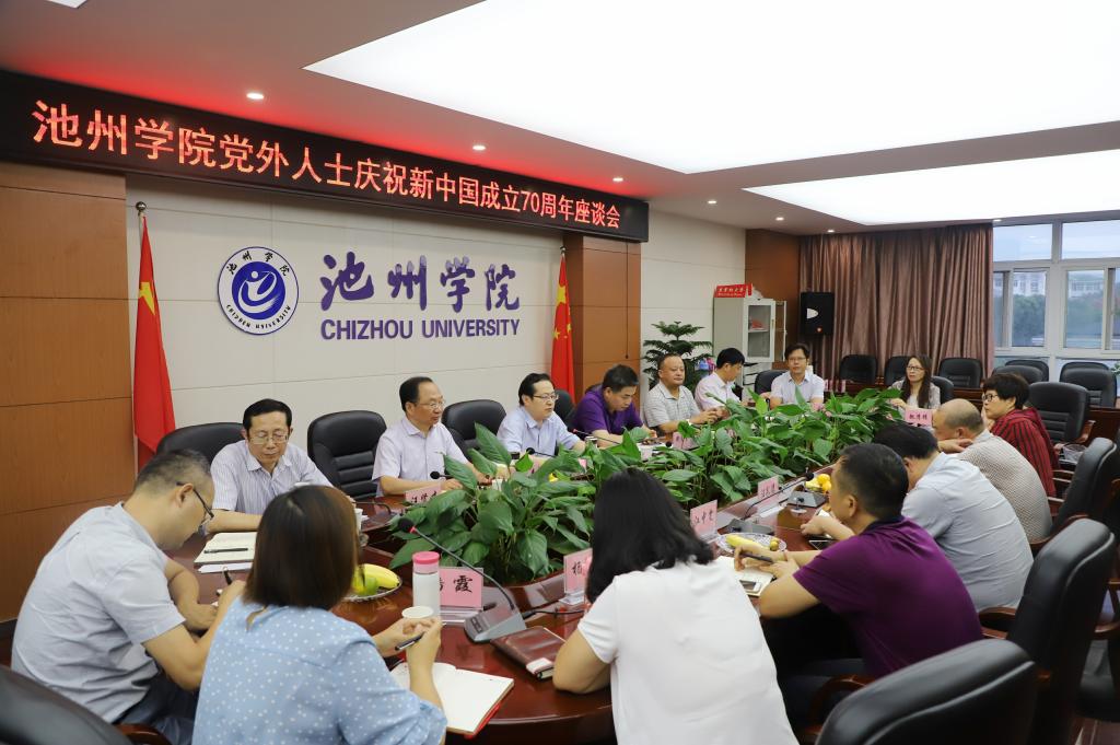 9月30日下午,学校在办公北三楼会议室召开党外人士庆祝新中国成立70周年座谈会。校党委书记孙晓峰,校长柳友荣,党委委员、副校长王延寿、阳光宁、汪贤才出席会议。省市人大代表、政协委员、各民主党派负责人、无党派人士代表参加会议。会议由党委委员、统战部长胡兵主持。