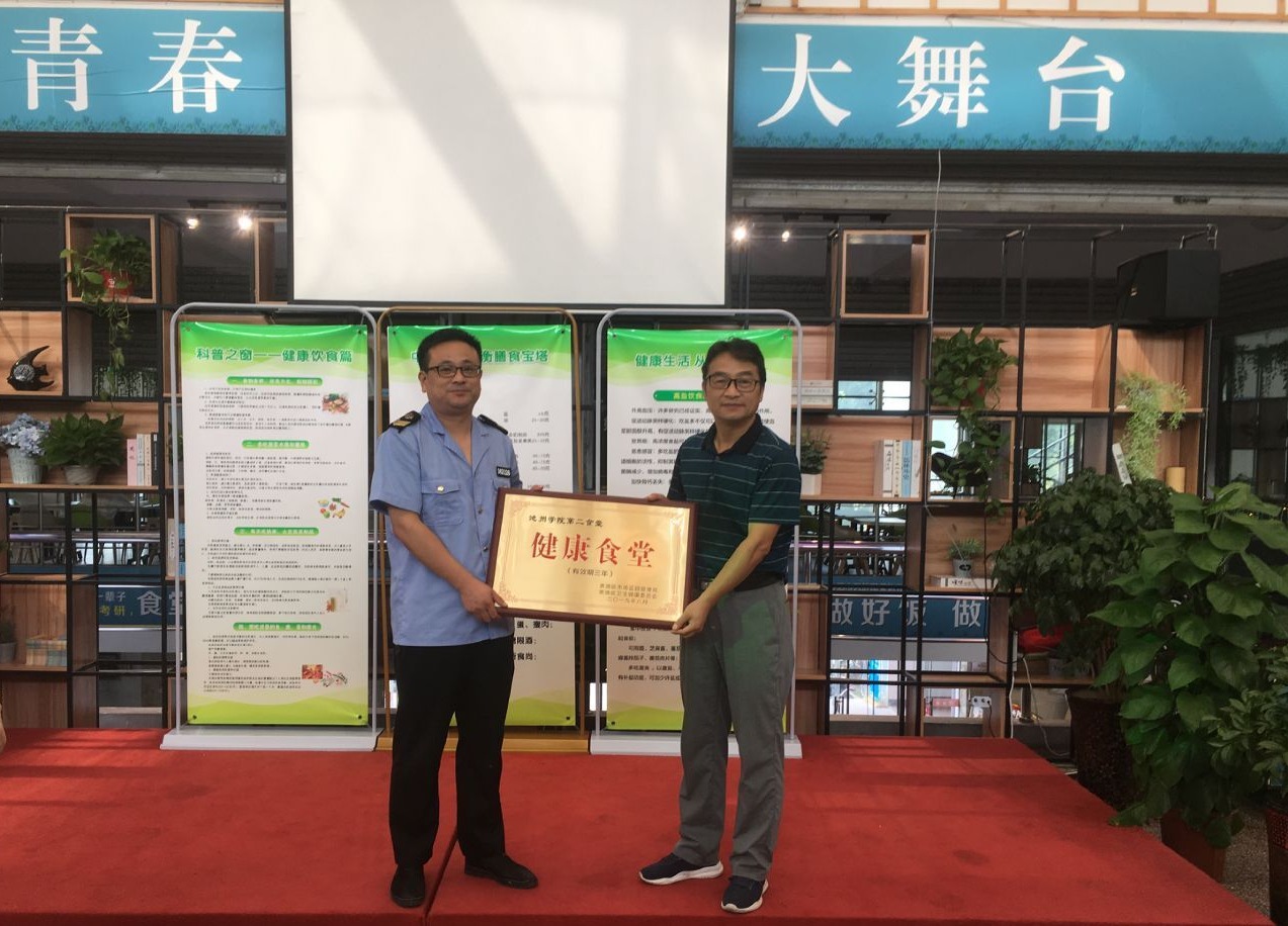 9月12日上午,池州市贵池区市场监管局为best365官网第二食堂颁发“健康食堂”牌匾。