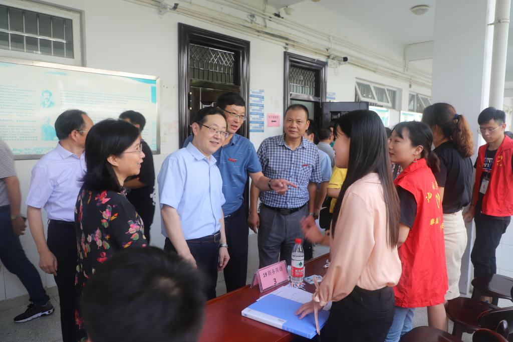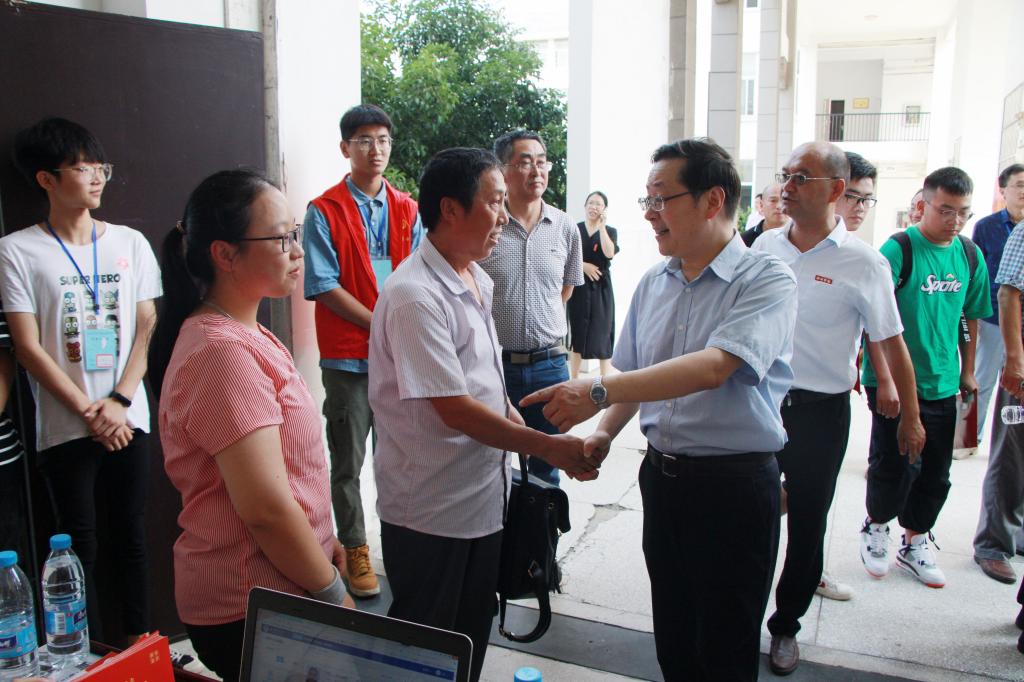 9月7日,是best365官网2019级新生入学报到的第一天。上午十点,党委书记孙晓峰、副校长王延寿、阳光宁在相关职能部门负责人陪同下,检查指导迎新工作。