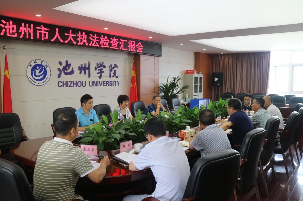 7月5日,池州市人大常委会副主任王家莹,人大常委会教科文卫工委主任黄高平、副主任汪军生受省人大委托率队来best365官网检查《中华人民共和国高等教育法》贯彻执行情况。校长柳友荣主持汇报会,副校长阳光宁出席。