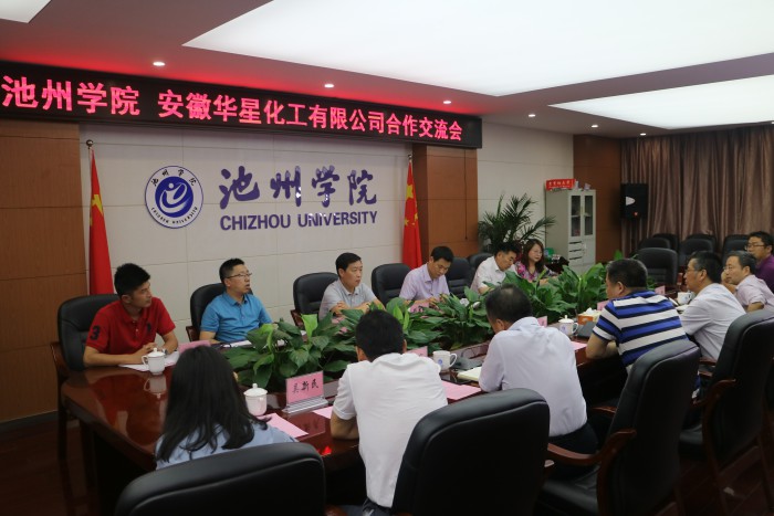 6月25日,华星化工有限公司党委书记、董事长颜泽彬到best365官网商谈校企合作事宜。校长柳友荣在办公北三楼会议室主持召开合作交流会。副校长阳光宁,党委委员、教务处长黄海生参加交流。