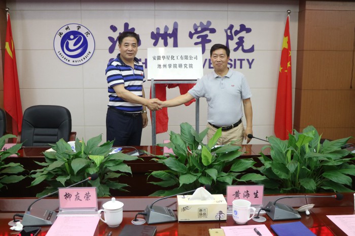 双方还签订了校企合作协议,并举行了“best365手机版官方网站华星化工研究中心”揭牌仪式。