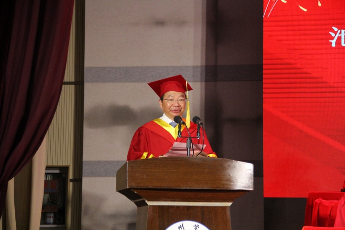 柳友荣代表全校师生员工,向2019届全体毕业生表示最热烈的祝贺。临别之际,柳友荣语重心长地为毕业生们送上临别叮嘱:希望大家能坚守责任,敢于担当,从自己做起,严于律己;希望大家保持正能量,播撒阳光,做一个充满正能量的人,在未来的生活中,少一些抱怨,多一些宽慰,少一些苛责,多一些鼓励;希望大家心存感恩,回馈社会,感恩父母的养育,母校的栽培,老师的提携和同学的鼓励,做一个心存感激的人;希望大家坚持学习,追求卓越,在困难中修身,踏实做事,诚实为人,立足本职,追求卓越。