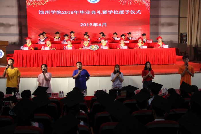 在毕业典礼尾声,全体师生合唱了《送别》、《祝你一路顺风》等歌曲,将气氛推向高潮, 让现场师生眼含泪光。