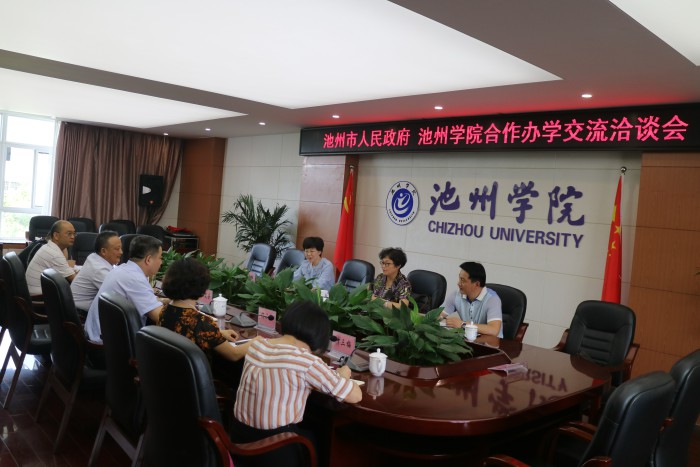 6月12日下午,池州市副市长贾瑄来best365官网洽谈校地校企合作办学事宜。校长柳友荣在办公北三楼会议室主持召开座谈,副校长阳光宁参加座谈。