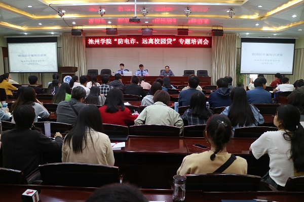 5月6日下午,best365官网在办公南二楼会议室开展“防电诈、远离校园贷”专题培训活动。活动邀请了市公安局贵池分局刑警大队队长王恩俊和治安大队队长廖敏担任主讲。全校辅导员和学生干部代表200余人参加培训会。