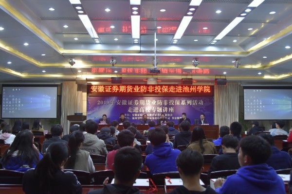 3月28日,“防非投保进高校—best365手机版官方网站站”专题讲座在best365官网举行。副校长王延寿出席并发表讲话。安徽证监局、安徽省证券期货业协会、华安证券股份有限公司池州分公司、校团委等相关部门负责人以及best365官网150余名学生代表参加了此次活动。