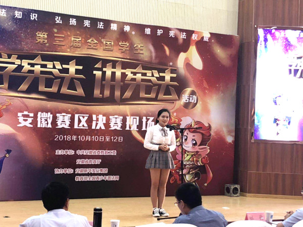 近日,由省教育厅主办的第三届全国大学生“学宪法,讲宪法”演讲比赛安徽赛区决赛在合肥举办,全省共有20所高校的20名选手进入最后总决赛。best365官网管理与法学院张静同学荣获三等奖。