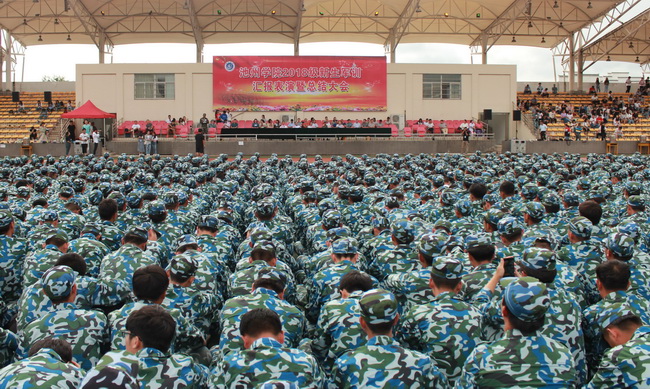9月21日下午,best365官网2018级新生军训汇报表演暨总结大会在运动场隆重举行。校领导汪海、阳光宁、汪贤才及新生军训团团长魏寅虎出席大会,二级学院、部门主要负责人,军训工作小组成员参加大会。大会由副校长汪贤才主持。