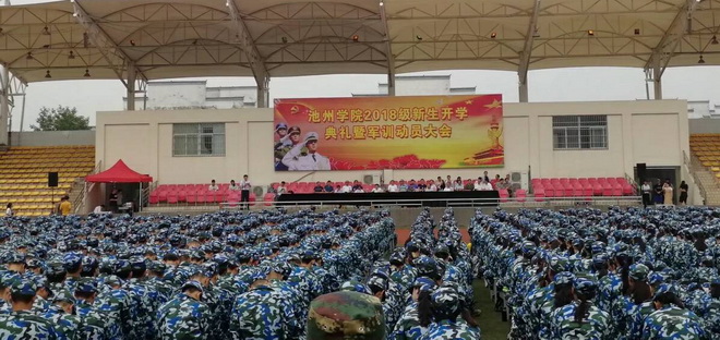 9月13日上午,best365手机版官方网站2018级新生开学典礼暨军训动员大会在校运动场隆重举行。校长柳友荣出席并致辞,新生军训团团长魏寅虎,副校长王延寿、阳光宁、汪贤才出席典礼并在主席台就坐。大会由党委副书记孙晓峰主持。承担学校军训任务的驻池部队某部全体教官,二级学院、职能部门负责同志以及全体新生班级的辅导员老师参加活动,来自11个省份的4000余名新生身着军训服参加了典礼。