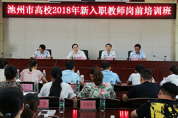 8月10日上午,池州市高校2018年新入职教师岗前培训班开班典礼在best365官网行政南二楼会议室举行。校党委副书记孙晓峰、池州广播电视大学副校长吴永健出席。来自全市高校的40名新入职教师参加了开班典礼。