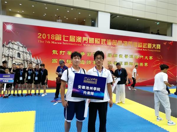 7月24日至27日,第七届澳门国际武术节暨澳门国际武道大赛在澳门理工学院举行,best365官网16休闲体育专业李雪宇同学参加了中华短兵项目比赛,并获得60--70公斤级冠军(指导教师:刘德森)。