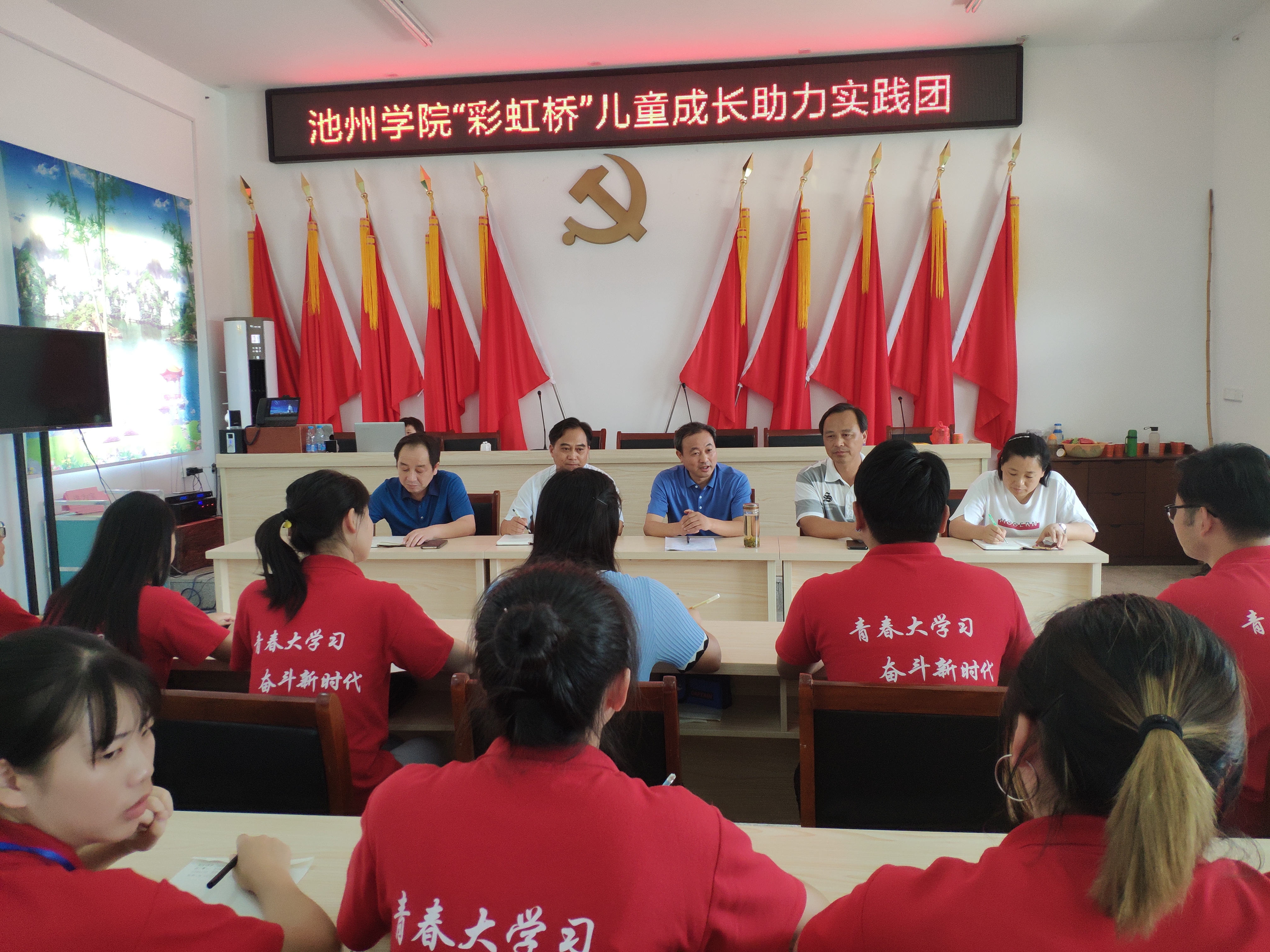 7月13日上午,校纪委书记汪海赴安庆市望江县土永村看望慰问best365官网“彩虹桥”留守儿童成长助力暑期“三下乡”社会实践团队。