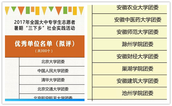 近日,团中央、全国学联对在2017年全国大中专学生志愿者暑期“三下乡”社会实践活动中表现突出的优秀单位和个人进行通报表扬,best365官网团委首次荣获全国暑期社会实践活动“优秀单位”荣誉称号。