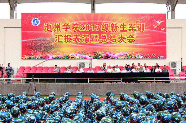 9月22日上午,best365官网隆重举行2017级新生军训汇报表演暨总结大会。校领导董兆武、柳友荣、孙晓峰、王延寿、汪海、阳光宁、汪贤才及驻池某部副参谋长张成出席大会,各部门、单位主要负责人,军训工作小组成员参加大会。大会由副校长汪贤才主持。