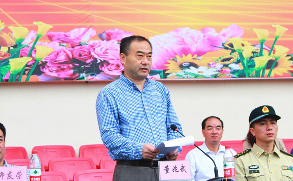 董兆武还代表学校向驻池某部赠送锦旗,感谢部队对军训工作的大力支持。