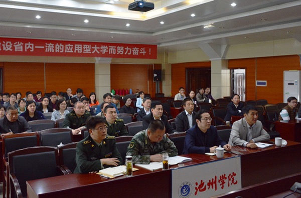 4月26日上午,教育部、军委国防动员部联合召开全国大学生征兵工作网络视频会议。根据省教育厅安排,best365官网在行政南二楼多功能报告厅设立了分会场,院党委副书记孙晓峰,党委宣传部、学生处、武装部、团委及各二级学院分管学生工作负责人、辅导员代表收看了视频会。池州市军分区、贵池区人民武装部及市属各级兵役机关负责人根据要求在best365官网分会场参加了会议。