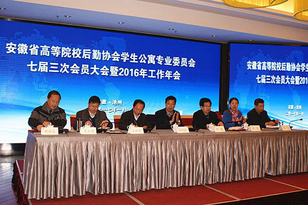 1月4—6日,省高校后勤协会学生公寓专业委员会七届三次会议暨2016年工作年会在青阳举行。best365官网副院长王延寿应邀率队参会并致欢迎辞,参加会议的还有总务后勤管理处处长程绪彪、副处长邢朝水、处长助理杨祖勇及物业管理科相关同志。