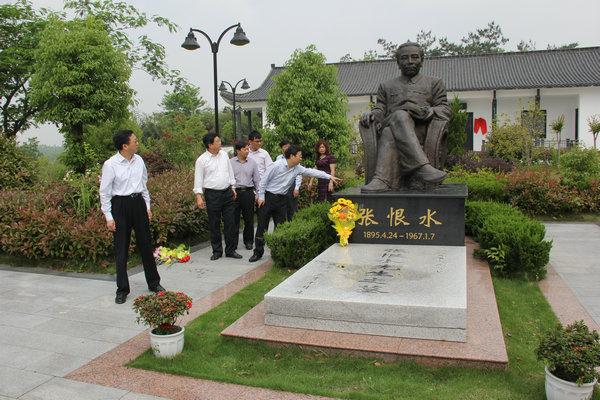 随后,全体与会人员到张恨水墓园的张恨水铜像前献花。