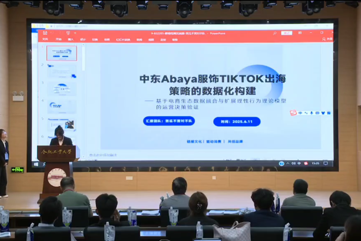 本届大赛吸引全省53所高校共5518支队伍参赛,分为分组赛和终极赛两个阶段。分组赛设9组(常规赛道5组、实战赛道4组),采用PPT答辩与专家现场询问方式进行。其中,跨境电商赛道项目《中东Abaya服饰TIKTOK出海策略的数据化构建》(指导老师:何佳莹、崔凡)表现突出。该项目深度挖掘中东服饰文化内涵,创新构建数据化运营模型,成功打通传统服饰产业与社媒营销融合路径,为民族特色产品出海提供了可复制的数字化解决方案,最终荣获该赛道特等奖。