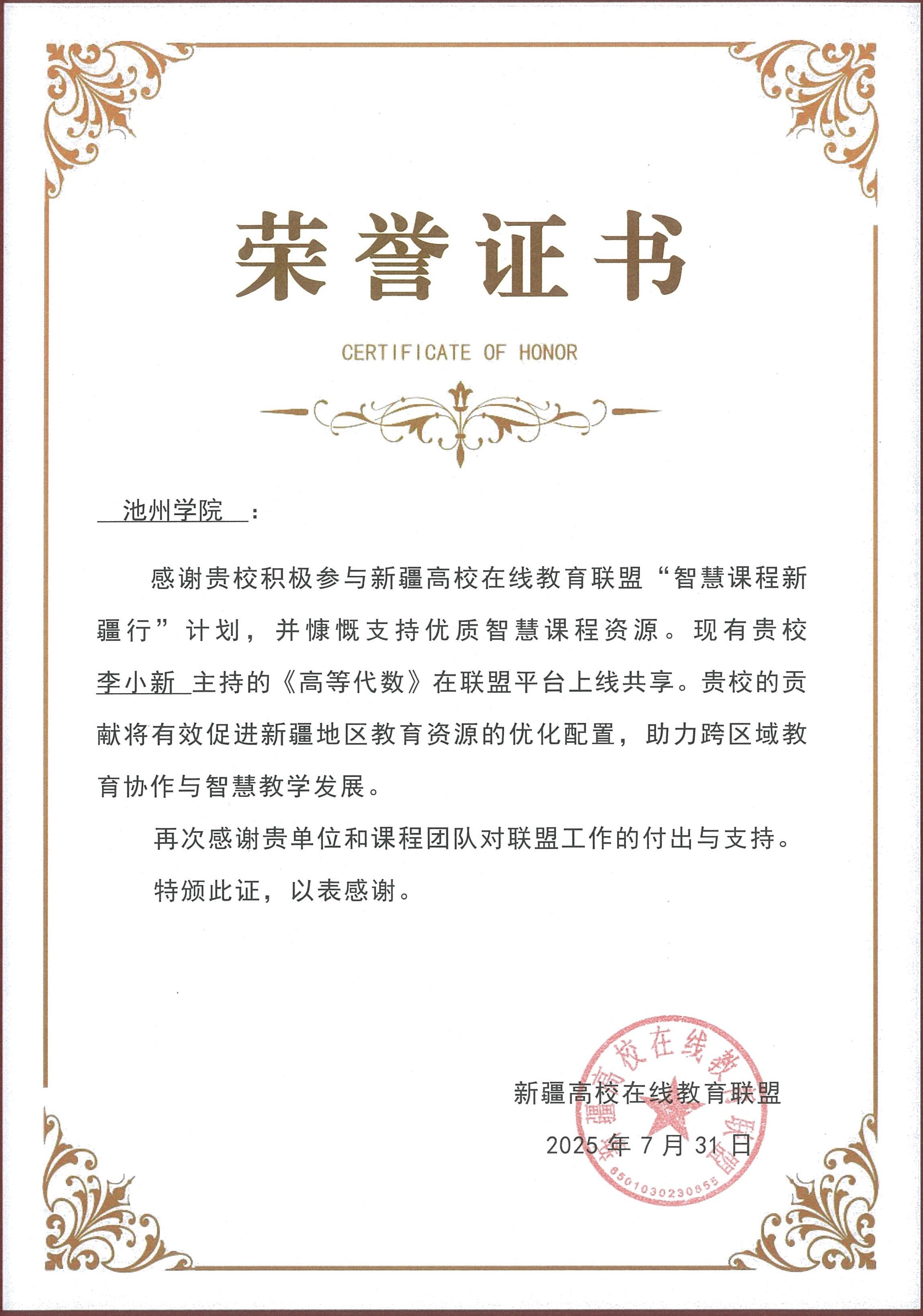 近日,“智慧课程新疆行”第一批上线课程名单公布,best365官网选送的《高等代数》课程通过审核,成功上线新疆高校在线教育联盟平台。