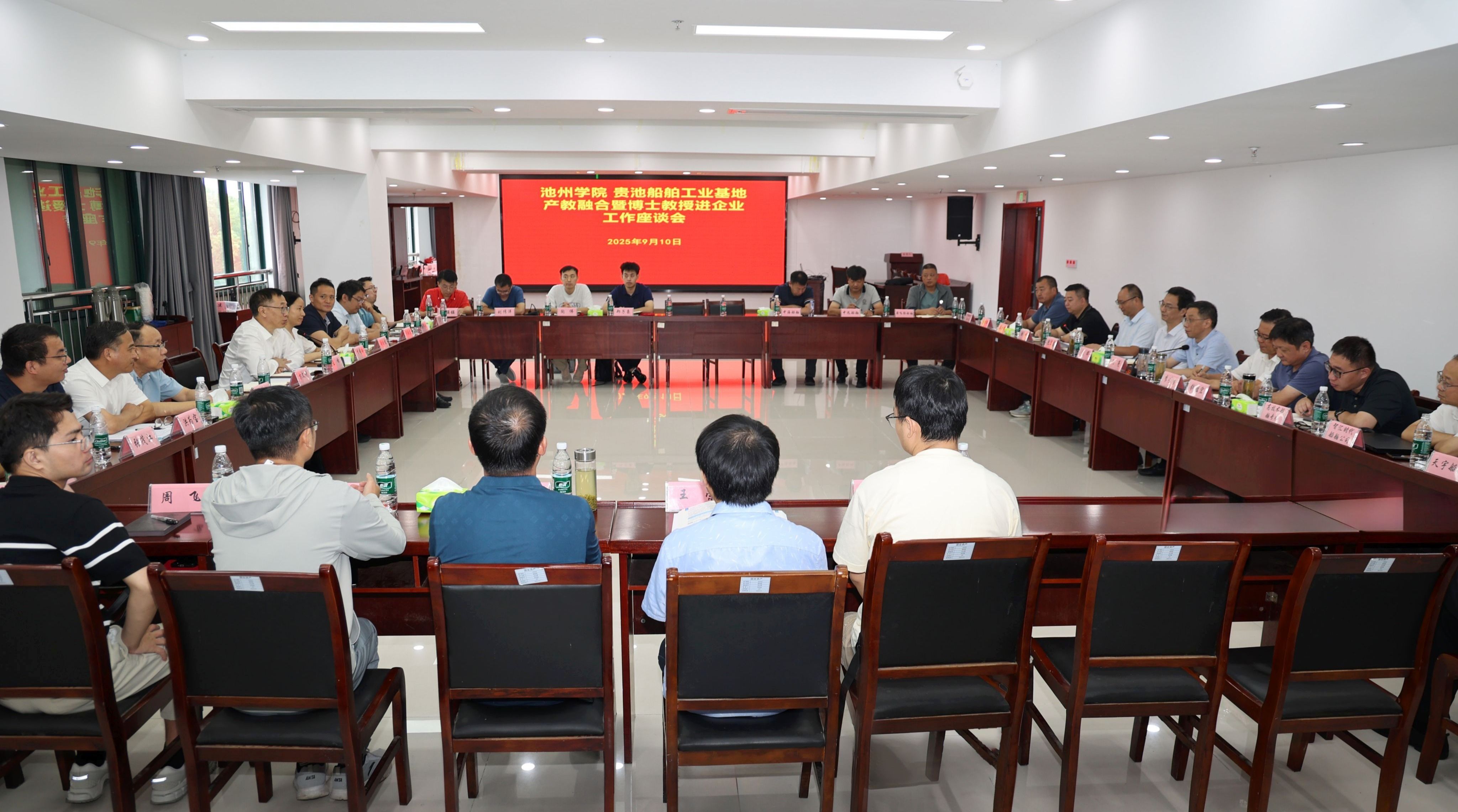9月10日上午,学校与贵池船舶工业基地举行产教融合暨博士教授进企业工作座谈会。校党委书记王峰,党委委员、副院长李明玲,池州市工信局党组书记、局长赵晖,贵池区副区长张亮出席座谈会。会议由市工信局党组成员、总工程师包宏志主持。