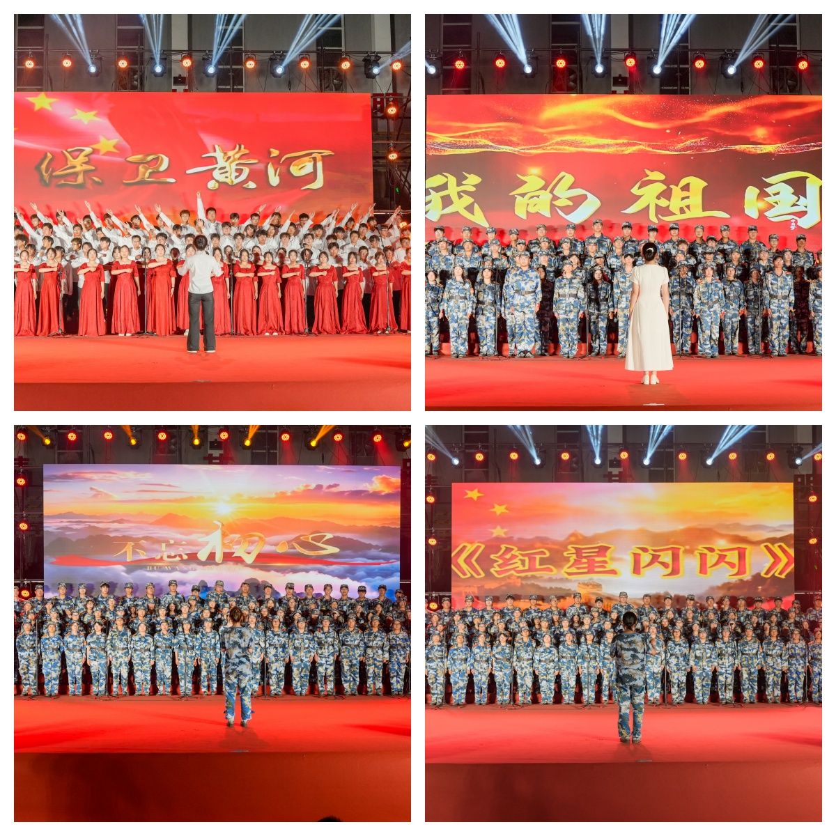 比赛在庄严而热烈的氛围中拉开帷幕。各参赛学院代表队精神抖擞、意气风发,在舞台上各展才华,表演形式丰富多样。领唱、分声部合唱贯穿其中,旁白朗诵点缀其间,更有器乐伴奏与情景演绎相得益彰。《保卫黄河》激昂旋律展现了中华民族坚韧不拔的意志;《紫荆花盛开》传递着对祖国统一的美好期盼;《强军战歌》以铿锵有力的节奏彰显青年责任担当;《党旗飘扬的方向》坚定豪迈,表达了永远跟党走的决心。同学们通过这些歌曲深情表达了对伟大祖国和中国共产党的热爱与祝福。