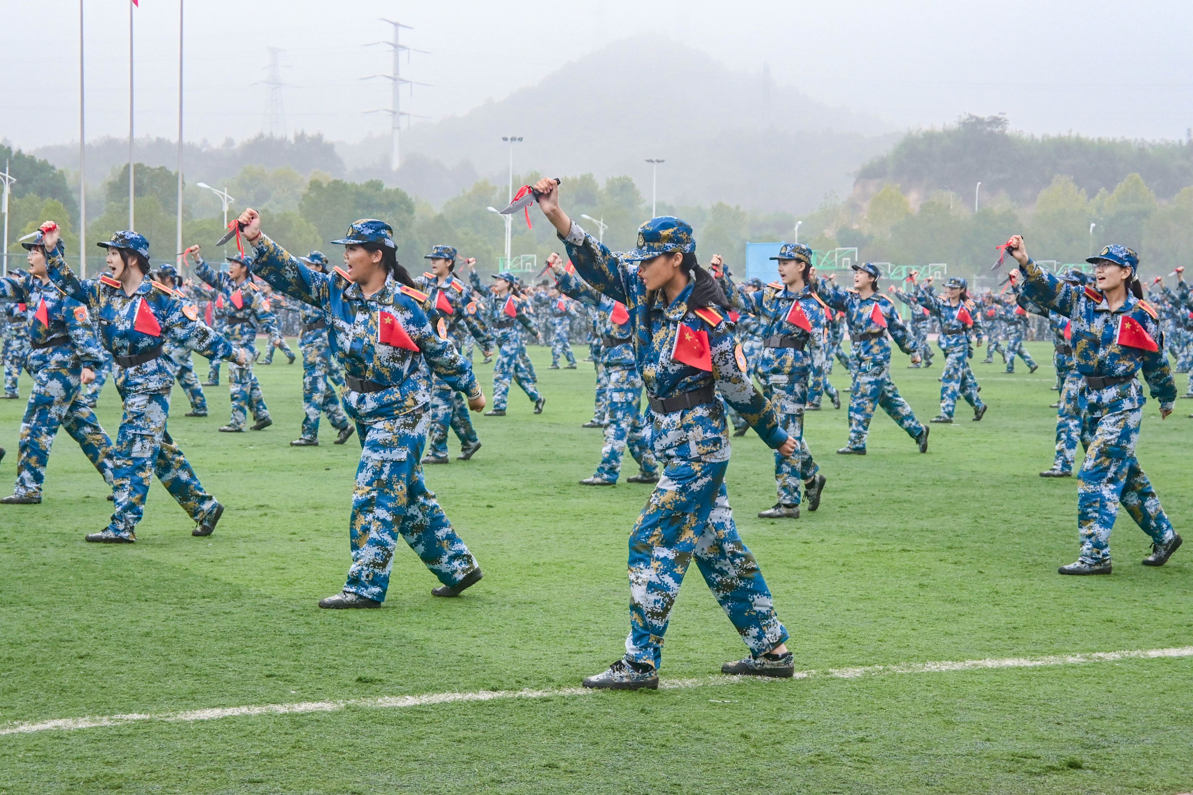 军训汇报表演在庄严的分列式进行曲中拉开序幕,各连队步伐铿锵、口号嘹亮,依次经过主席台接受检阅,展现出新时代学子的蓬勃朝气。