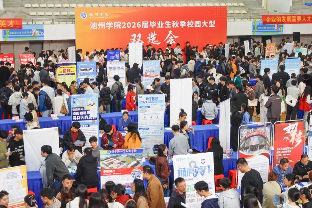 为学习宣传贯彻党的二十届四中全会精神,深入落实习近平总书记关于高校毕业生就业工作的重要指示精神,充分发挥校园招聘主渠道作用,11月1日,学校联合池州市委人才工作局、池州市人力资源和社会保障局在best365手机版官方网站体育馆举行2026届毕业生秋季校园大型双选会。校党委副书记盛国星、池州市委人才工作局局长林贤中、池州市就业创业服务中心主任纪平前往现场指导。