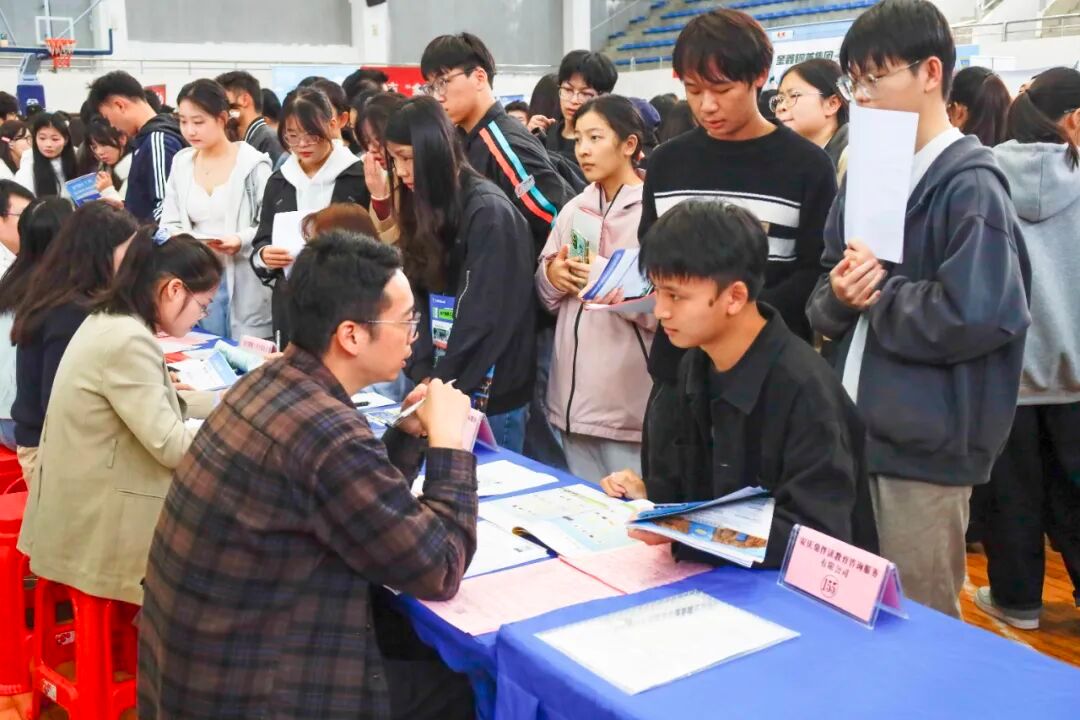 本次双选会共有来自上海、浙江、江苏、湖北、河南、江西和我省200余家用人单位踊跃参会,岗位需求4000多个,岗位涵盖人工智能、高端装备制造、新能源新材料、教育、旅游、信息技术、商务服务、艺术设计、金融等多个领域,为毕业生提供了丰富多样的就业选择。活动现场气氛热烈、人潮涌动,毕业生手持精美的简历,穿梭与各个展位之间,寻找与自己专业相符及职业规划相匹配的就业机会,仔细了解招聘岗位信息,并与用人单位积极沟通。招聘单位对best365官网毕业生的综合素质和专业能力给予积极评价。