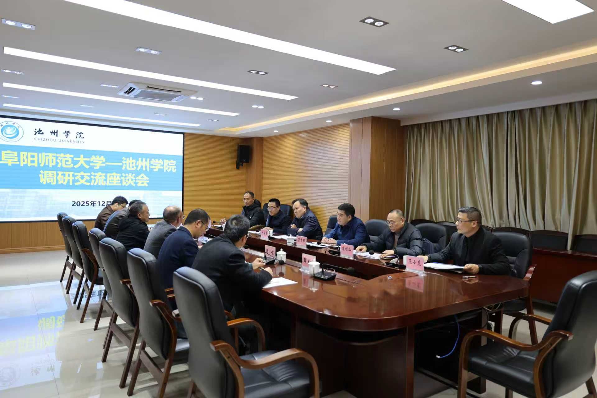 12月2日,阜阳师范大学党委副书记、校长方廷勇,党委常委、副校长窦贤琨一行来校调研交流。校党委副书记、院长王先柱出席座谈会并讲话,党委委员、副院长阳光宁出席座谈会。